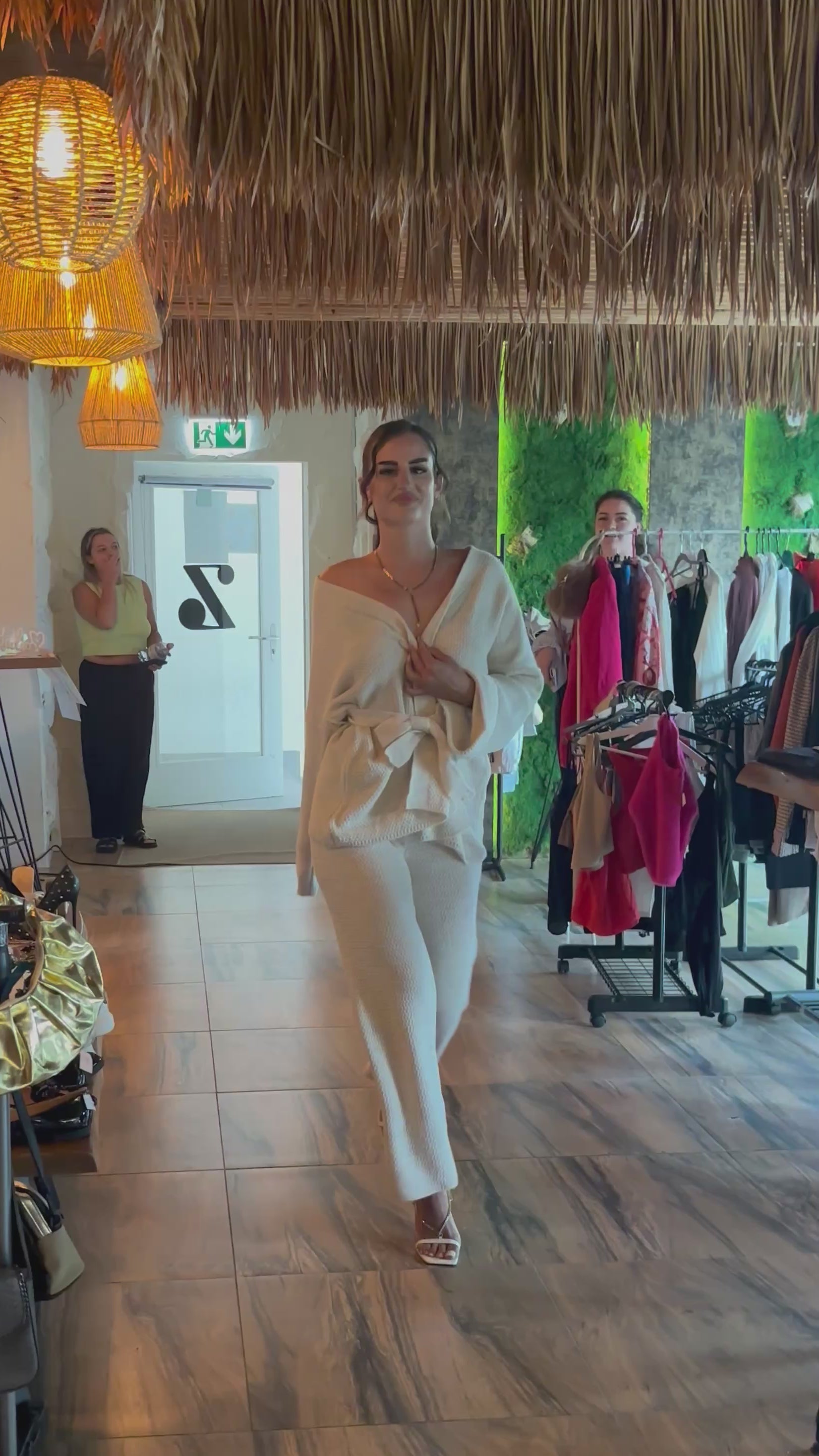 Gilet mi-long avec ceinture intégrée à la taille, pantalon assorti.